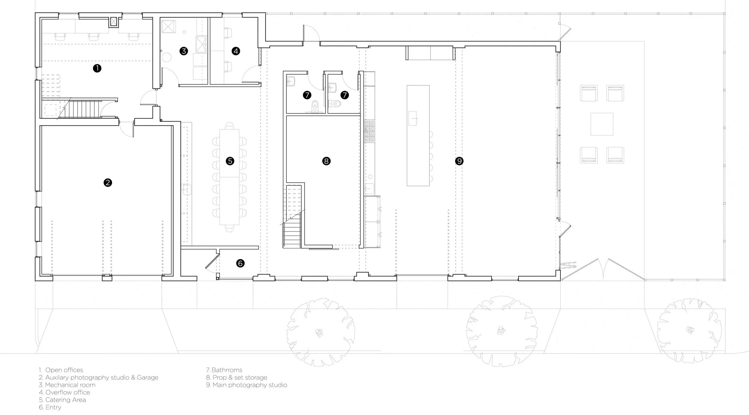 The result is a boutique-scale studio that feels expansive yet intimate — an environment tailored for both creativity and hospitality. Every detail reflects the client’s commitment to elevating the production experience, from shared meals around the table to outdoor summer lunches. Today, the photography studio attracts major national brands and demonstrates how thoughtful design can transform an industrial building into a thriving creative business and community anchor.